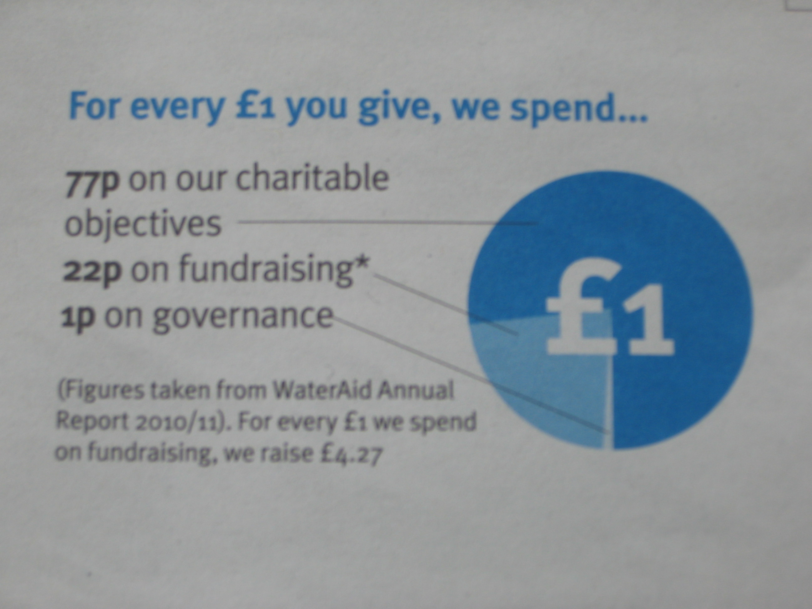 ” cost-effective programmes (per pound of expenditure on ‘charitable objectives’ as WaterAid put it) would be very poorly served by an organisation with such ineffective fund-raising that most of the donations were spent on attracting donors.”
