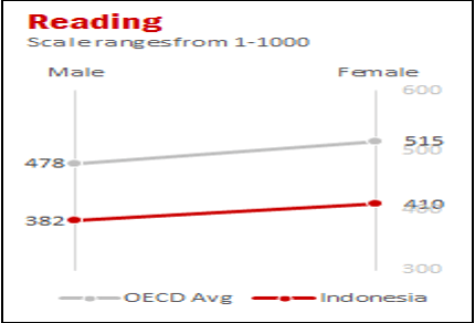 Two private individuals each with a foundation wanted to set up a new joint giving programme to improve girls’ education in various countries, including Indonesia. Giving Evidence established pretty quickly that, in Indonesia, girls’ education (attendance and attainment) does not lag behind boys’ – in fact, in reading, girls slightly outperform boys. But both boys and girls lag significantly behind the OECD average (see graph, left). So we were able to rapidly re-orientate their giving away from a ‘problem’ which actually doesn’t exist towards one that really does.
