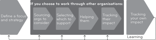 *This diagram shows the standard process for supporting charities. There are good ways and bad ways of operating at each stage. This is discussed in Caroline Fiennes’ acclaimed book about effective giving, It Ain’t What You Give, It’s The Way That You Give It.