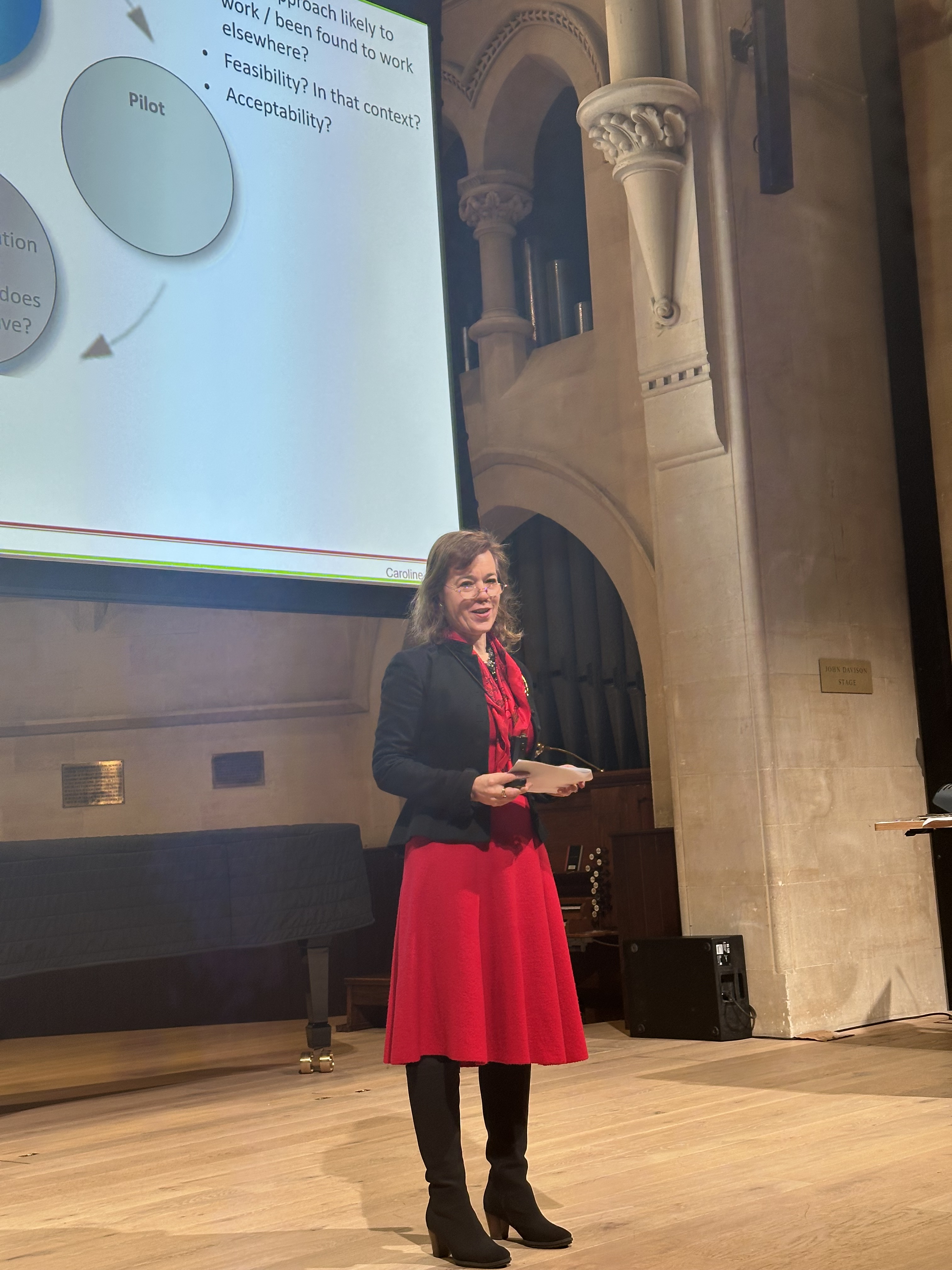 The venue clearly wasn’t expecting speakers to stand in the middle of the stage, so the camera only shows the AV table to the side. Caroline appears in the video at ~9.11 and 10.21 briefly – to check the time as no clock was visible from the stage!