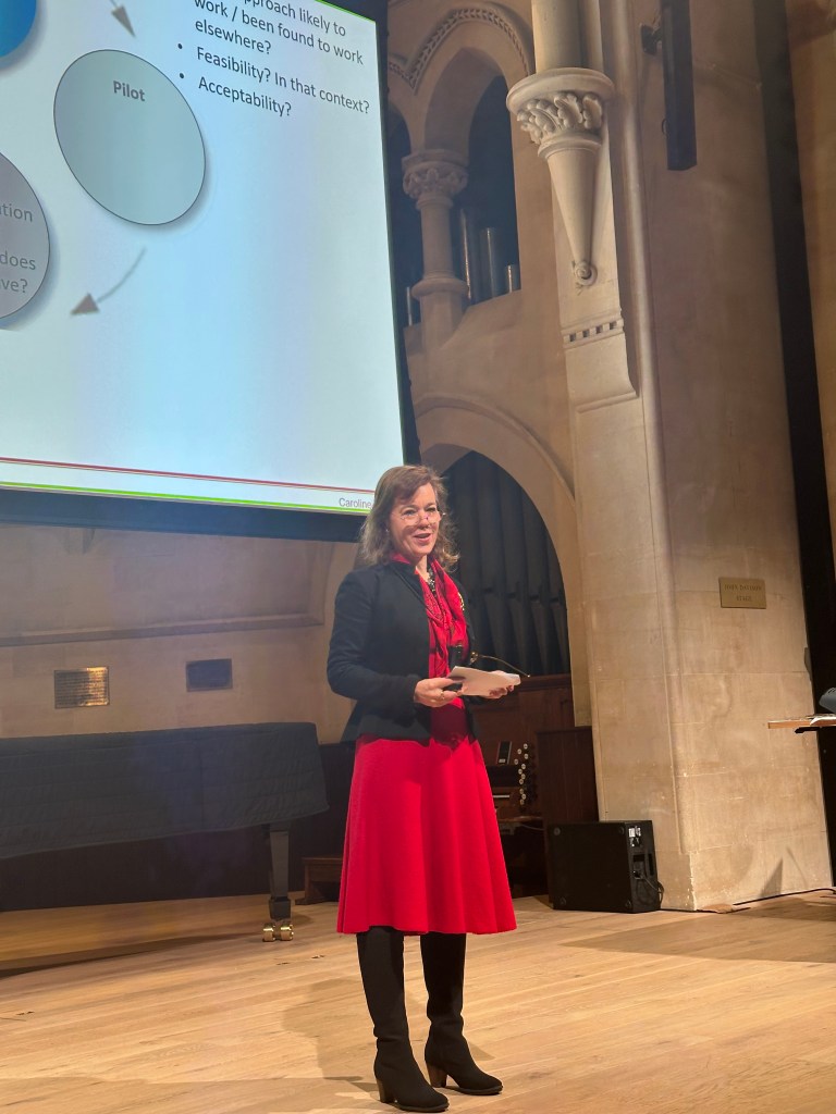 Getting research into practice: Keynote at Global Evidence and Implementation Summit, 2018: Caroline Fiennes gave a keynote presentation at the Global Evidence and Implementation Summit in Melbourne, October 2018. To watch, click on the photo and wait a second: you will need to log in but any email address will suffice. Excuse the surprise didgeridoo interruption!